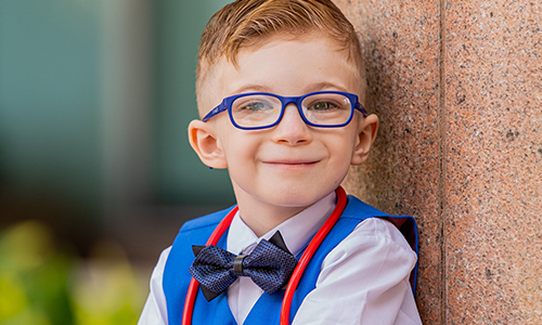 Davey Jean was born with a rare genetic disorder called 22q11.2 deletion syndrome (22q) and was faced with many 22q-related anomalies including congenital heart defects, cleft palate, developmental and speech delays, etc. At 30 weeks in utero, she was diagnosed with Tetralogy of Fallot, a compilation of four heart defects, and required open-heart surgery soon after her birth. By the time she was three years old, she was still non-verbal and used American Sign Language to communicate. Her parents learned that she had conductive hearing loss and would need ear surgery to help drain the fluid causing it. Davey Jean also went through two complex surgeries for her Atypical Submucosal Cleft Palate, which made it nearly impossible for her to form sounds and words. The ear, nose, and throat (ENT) department at Valley Children’s, along with the plastic surgery, audiology and speech therapy teams, all joined in an effort to help with Davey Jean’s hearing issues and speech delays. Today, she is able to communicate using words. Now ten years old, Davey Jean has already undergone five surgeries at Valley Children’s. She continues to see multiple specialists at Valley Children’s, as well as physical and occupational therapy. She is very active and enjoys playing with her friends and doing gymnastics. She loves going to the park and playing with her toys and her dog, Tater Tot.