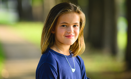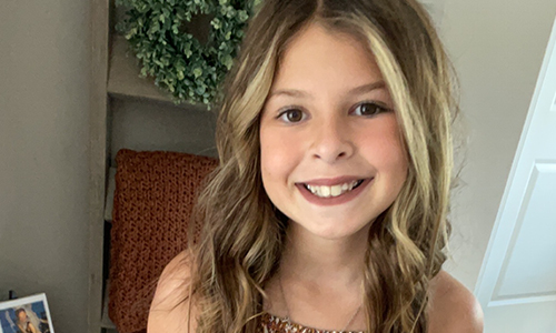 Less than two weeks after Molly started experiencing numbness in her face, she was diagnosed with Ewing sarcoma, a type of cancer that forms in bone or soft tissue. Molly underwent brain surgery to remove the tumor and has recently finished chemotherapy. Molly’s dad said that while he could never have imagined hearing the word cancer, he finds comfort in knowing how much the hospital staff cares for his daughter. “Cook Children’s is a big part of this new life that we have to live while we get through this season,” he said. “It’s not just us fighting this fight. While the journey hasn’t been easy, Molly has worked to express any fears and concerns with the support of Child Life specialists.”