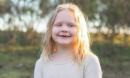 Aisley’s parents took their 3-year-old daughter to her pediatrician when she began experiencing frequent headaches and vomiting, was especially tired and was eating less than usual. Aisley’s pediatrician referred her to Seattle Children’s, where an MRI revealed a life-threatening tumor that was pushing her brain to one side. She needed to go to the intensive care unit immediately, and then undergo emergency brain surgery. Aisley’s parents were stunned. Three days later, Aisley had a six-hour surgery to remove and biopsy her tumor. To pinpoint her exact diagnosis, pathologists used molecular testing - a type of precision medicine testing that was launched just a few years prior. The results showed Aisley had a rare and aggressive brain cancer. Her treatment included six months of chemotherapy, then six weeks of radiation to remove any remaining cancer cells. Her radiation oncology team significantly reduced the risk of damage to Aisley’s brain by using proton therapy to protect areas critical for language, memory and learning. Aisley completed her treatment one year later and continues to have MRI scans every six months – she remains cancer-free today. Thanks to generous donors to the Uncompensated Care Fund, the ongoing costs of the hearing aids Aisley needs are covered. Today, Aisley is an active 7-year-old on a competitive dance team. She loves doing cartwheels, swimming and playing with her sister, Elin.
