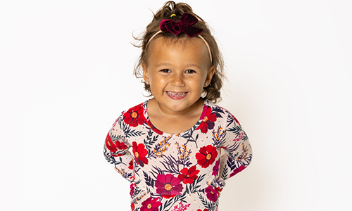 Davey Jean was born with a rare genetic disorder called 22q11.2 deletion syndrome (22q) and was faced with many 22q-related anomalies including congenital heart defects, cleft palate, developmental and speech delays, etc. At 30 weeks in utero, she was diagnosed with Tetralogy of Fallot, a compilation of four heart defects, and required open-heart surgery soon after her birth. By the time she was three years old, she was still non-verbal and used American Sign Language to communicate. Her parents learned that she had conductive hearing loss and would need ear surgery to help drain the fluid causing it. Davey Jean also went through two complex surgeries for her Atypical Submucosal Cleft Palate, which made it nearly impossible for her to form sounds and words. The ear, nose, and throat (ENT) department at Valley Children’s, along with the plastic surgery, audiology and speech therapy teams, all joined in an effort to help with Davey Jean’s hearing issues and speech delays. Today, she is able to communicate using words. Now ten years old, Davey Jean has already undergone five surgeries at Valley Children’s. She continues to see multiple specialists at Valley Children’s, as well as physical and occupational therapy. She is very active and enjoys playing with her friends and doing gymnastics. She loves going to the park and playing with her toys and her dog, Tater Tot.